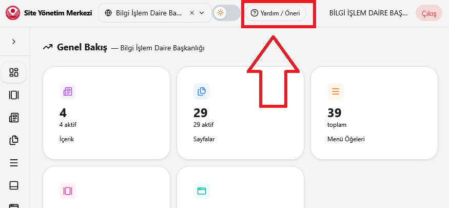 Yönetim panelinde sağ üst kısımda bulunan "Yardım/Öneri" butonuna tıklayarak destek taleplerinizi iletebilirsiniz.